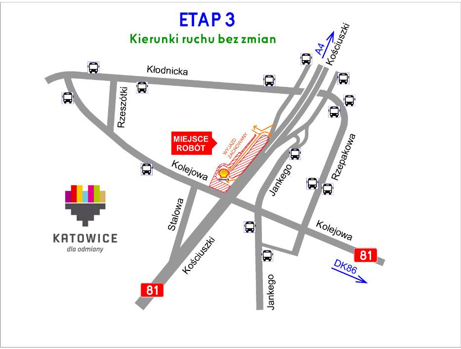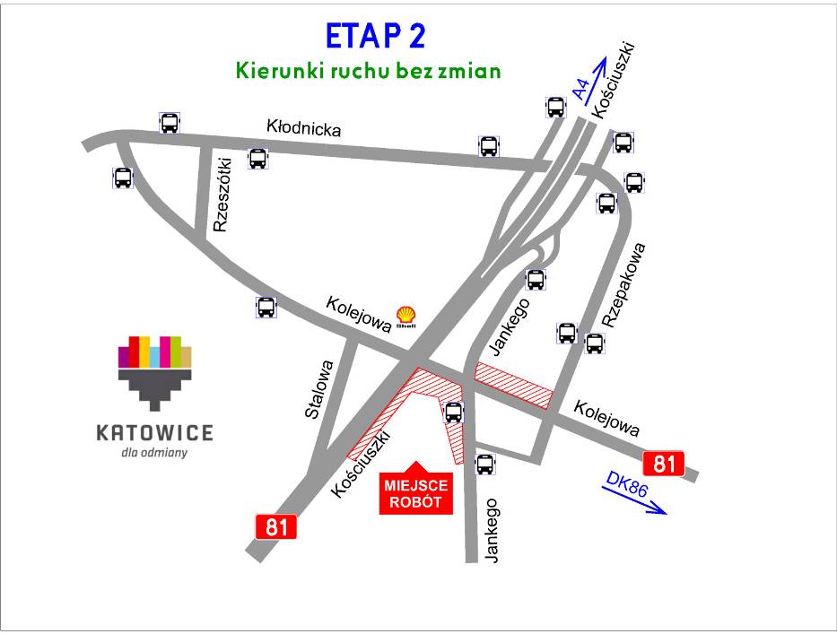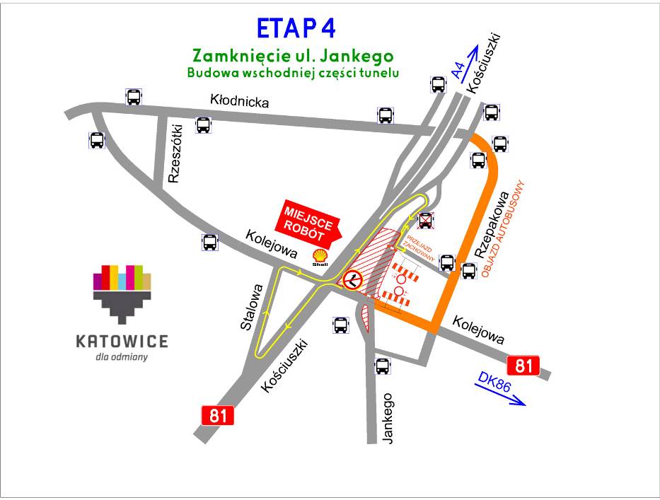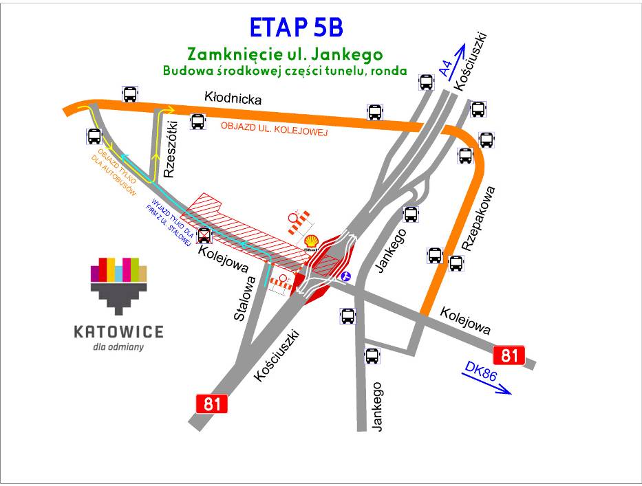 W związku z budową Galerii Libero szykuje się wielka przebudowa układu drogowego w rejonie ulicy Kościuszki i Kolejowej w Katowicach. Przebudowane zostaną skrzyżowania Kościuszki – Kolejowa – Jankego i Kolejowa – Rzepakowa. W planach jest także tunel pod ulicą Kościuszki oraz rondo. Do września prace mają się odbywać pod ruchem.