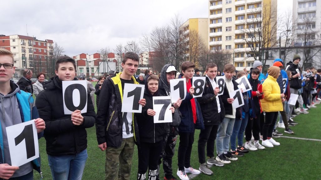 910 uczestników – uczniów, nauczycieli, sympatyków szkoły – ustawiło się w jednym rzędzie trzymając cyfry 3,14 ….i 906 dalszych 😉