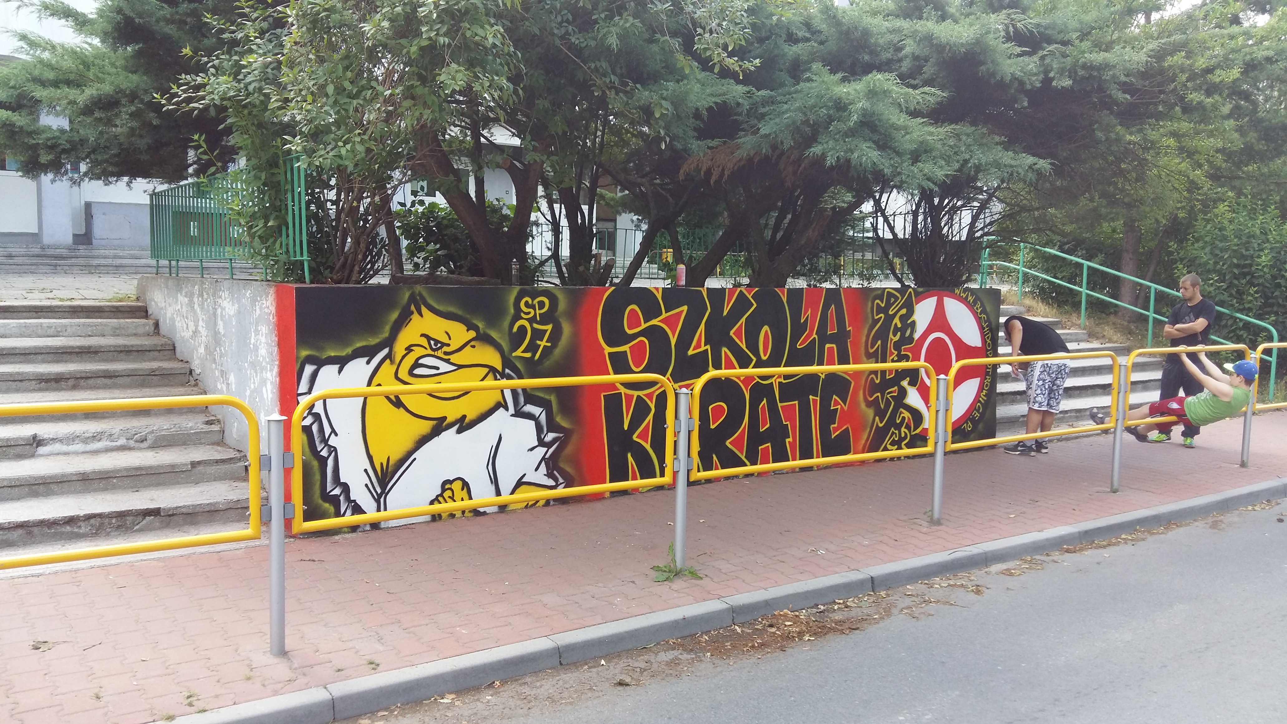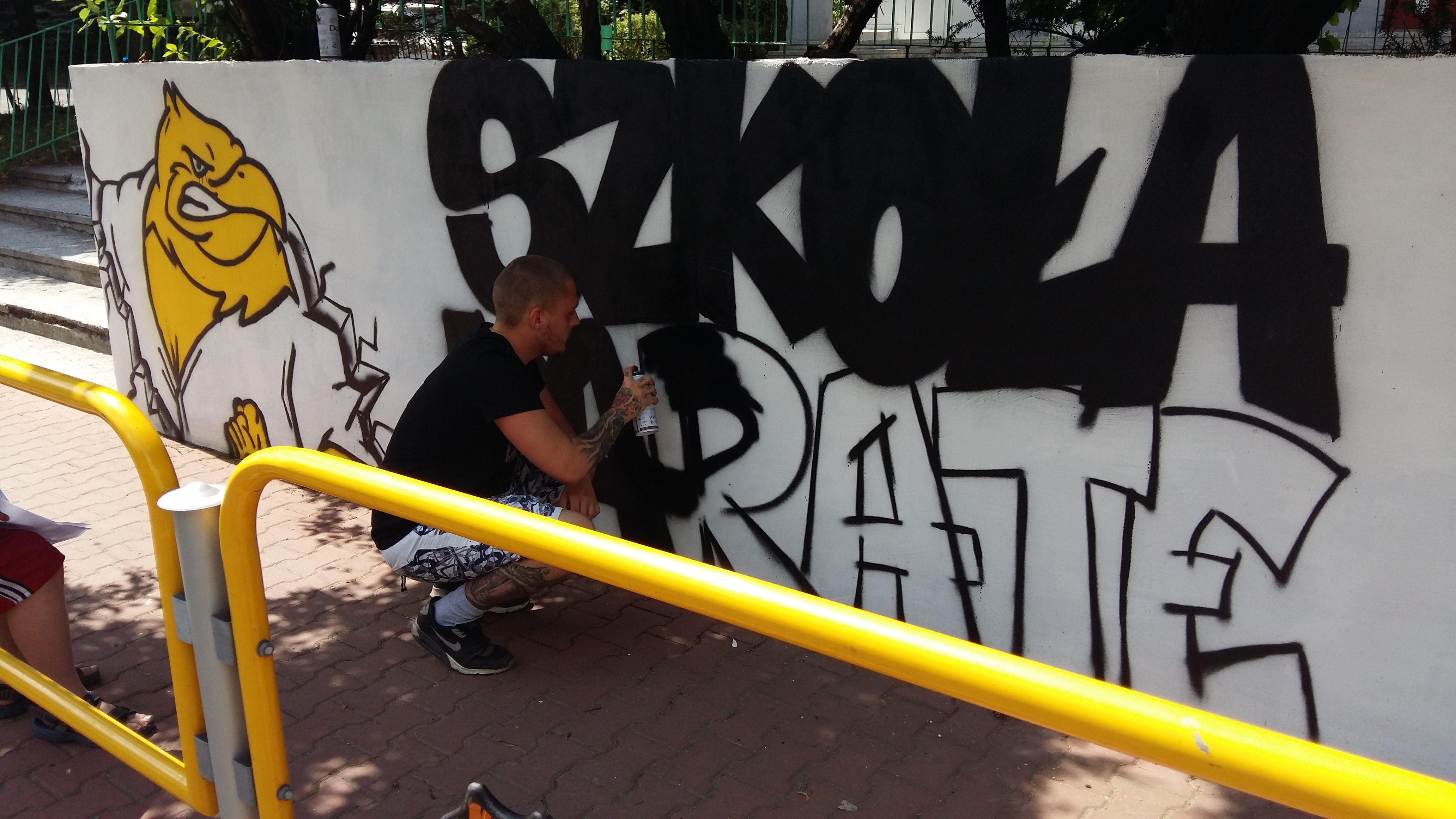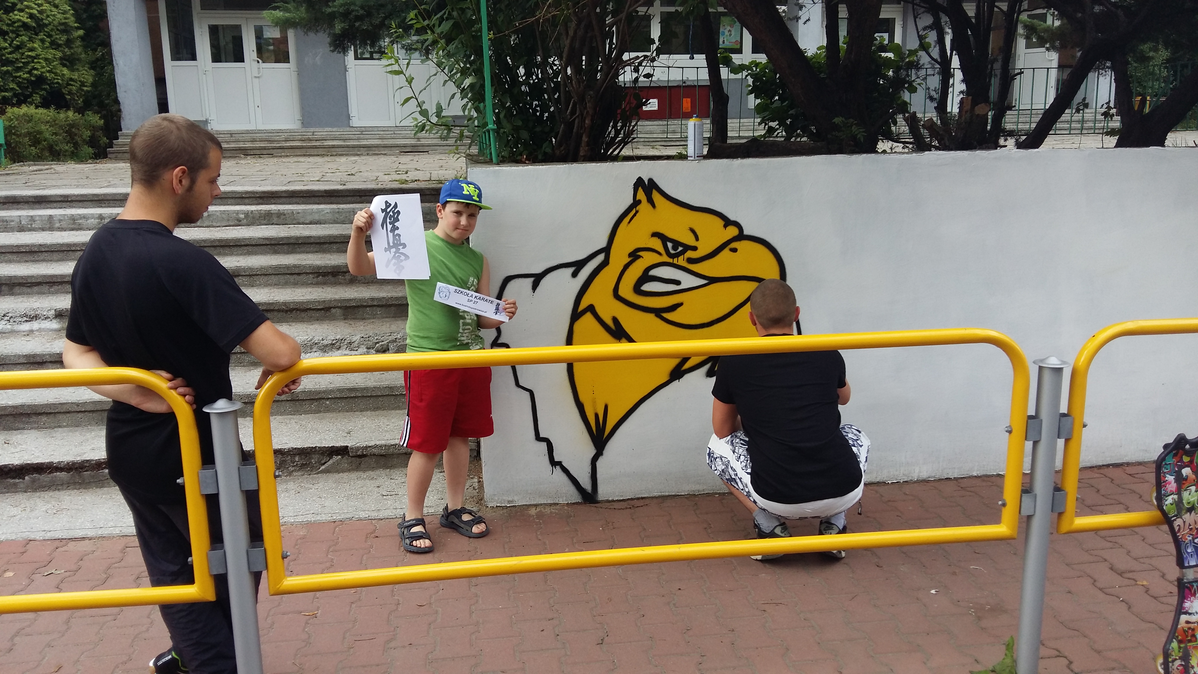 GRAFFITI Klubu w SP 27 W wakacje nie próżnujemy ..w celu promocji Klubu zorganizowaliśmy malowanie baneru graffiti przy szkole Podziel się na:
