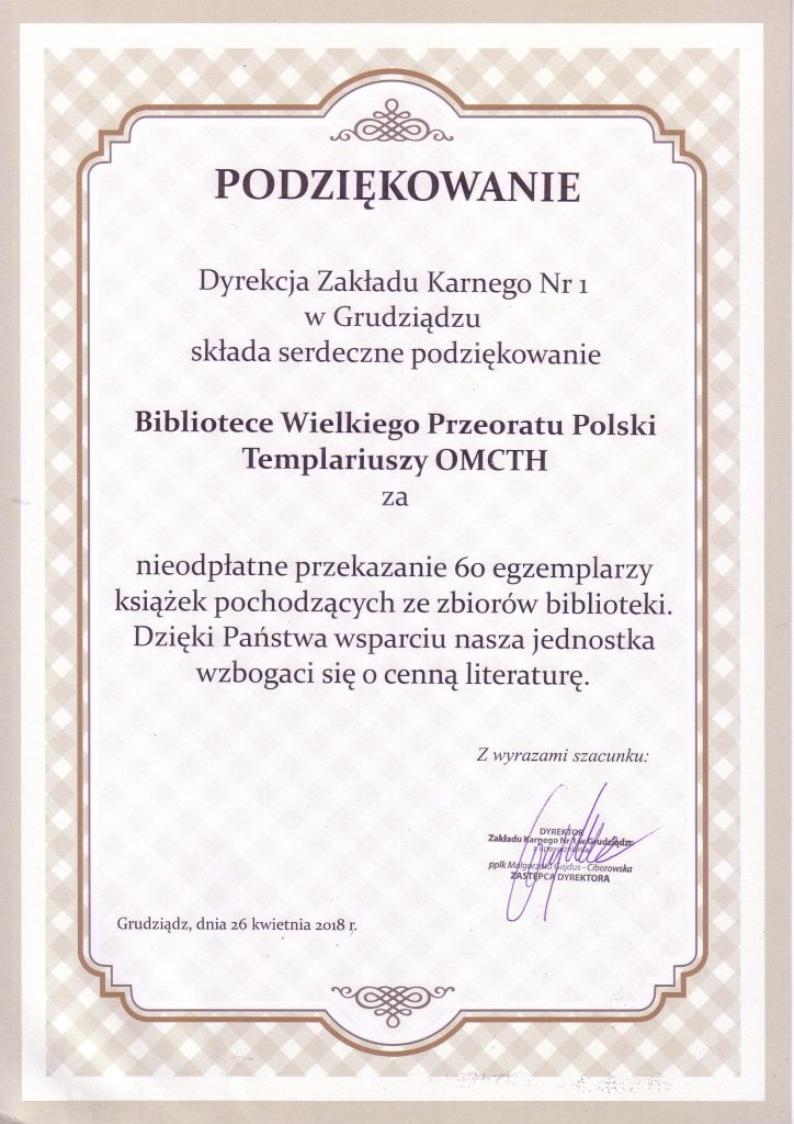 Książka dla więźnia – podziękowanie