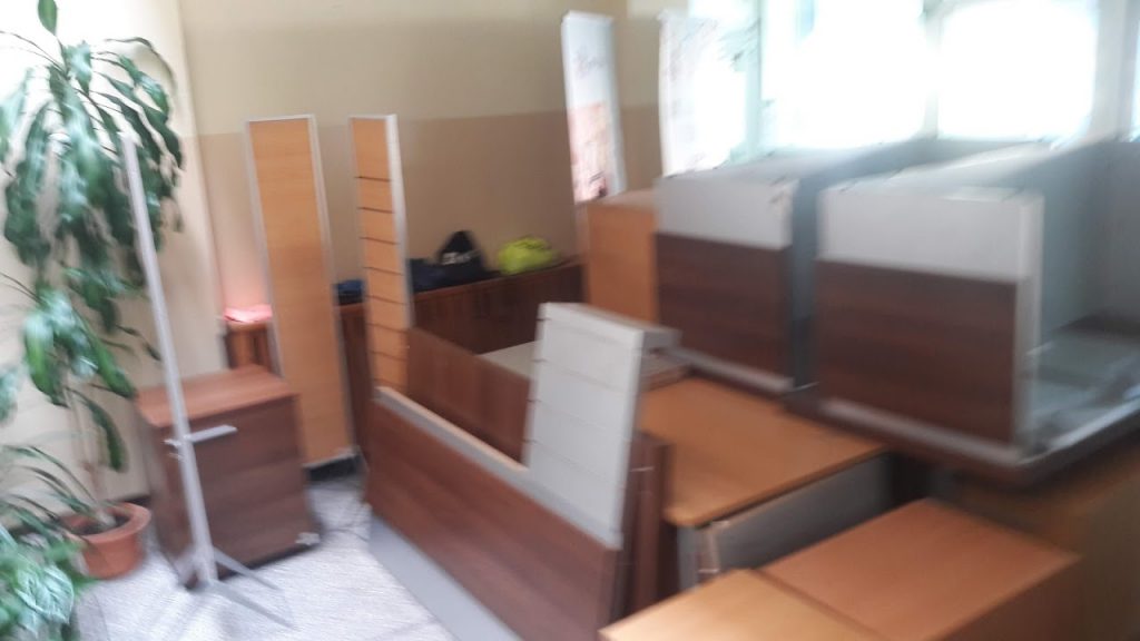 Dzięki szybkiej reakcji naszej przewodniczącej rady szkoły i niesamowicie sprawnej akcji organizacyjnej zdobyliśmy dla szkoły całkiem poważną ilość szafek, szafeczek, biurek (właściwie z ciężaru sądząc biur) za symboliczna złotówkę.