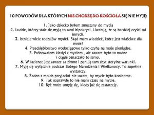 10 powodów dlaczego nie chodzę do kościoła ups nie myje się ;)
