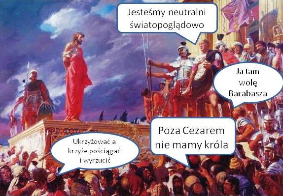 Dwa tysiące lat temu i dzisiaj zmanipulowany lud krzyczy ….. wyrzucić krzyże.. .jesteśmy neutralni światopoglądowo