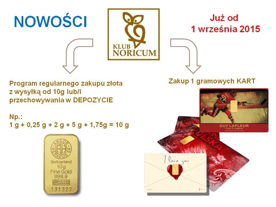 Już od 1 września w ramach Klubu Noricum wprowadzamy, oprócz możliwości zakupu regularnego złota i przechowywania go w depozycie, możliwość zakupienia 1 g kolekcjonerskich kart